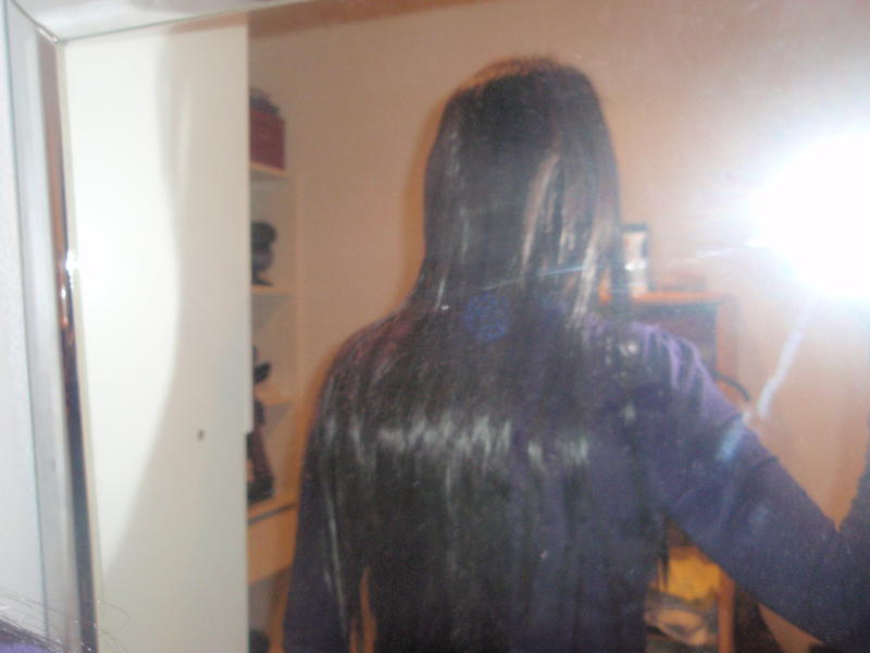 voila les filles j ai pris des photos mais bon dsl je peu pas faire mieu tte seule je n y arrive pas .... j ai pris les photos 1 a la lumiere du jour et l autre dans mon dressing comme ca vous pouvez voir comment ca fait( j ai poser vite fait mes extensions pour voir la différence de couleur) ...:24-vomit: