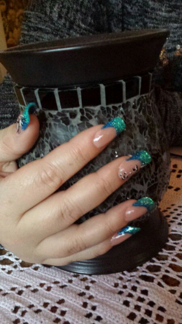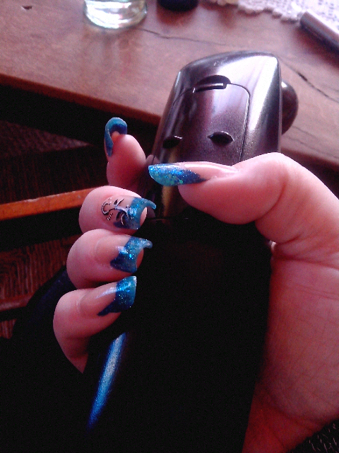 Y a 1 semaine devant CLEM je me pose tranquille pour me faire une pause( ça faisait loooongtemps)et j entame pose résine sur chablons. Bref je fini ma main mais j ai tellement traîne que a 23h je renonce a la finition et.... a la 2 em main!!!