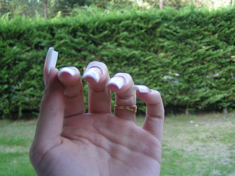 alors voilà je suis consciente qu'il y a plein de défauts!!! sur chaque ongle la forme est différente, j'ai voulu tester, ce ne sont que des essais mais plutôt que de le faire sur main d'entraînement j'ai fait ça sur moi!! c'est ma tte première fois..