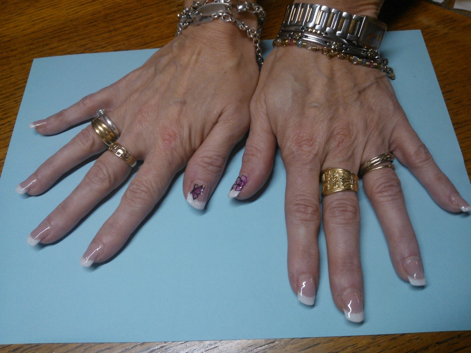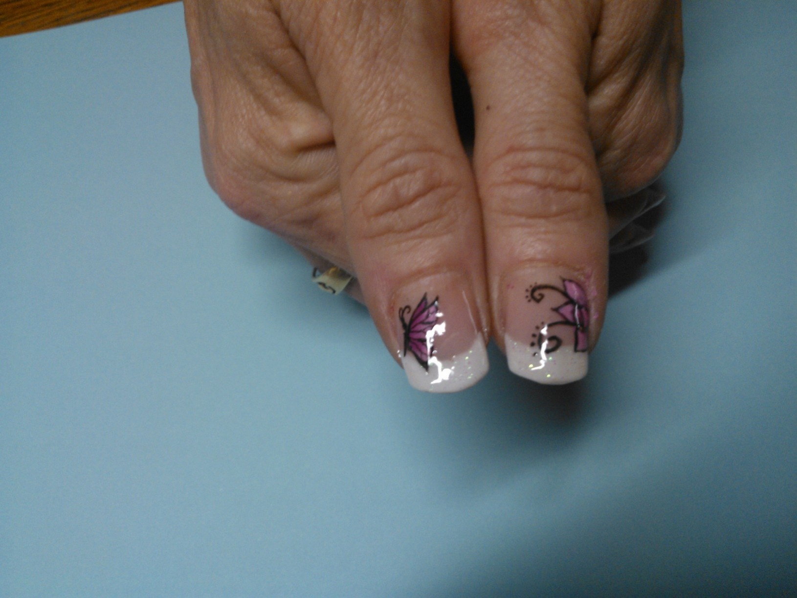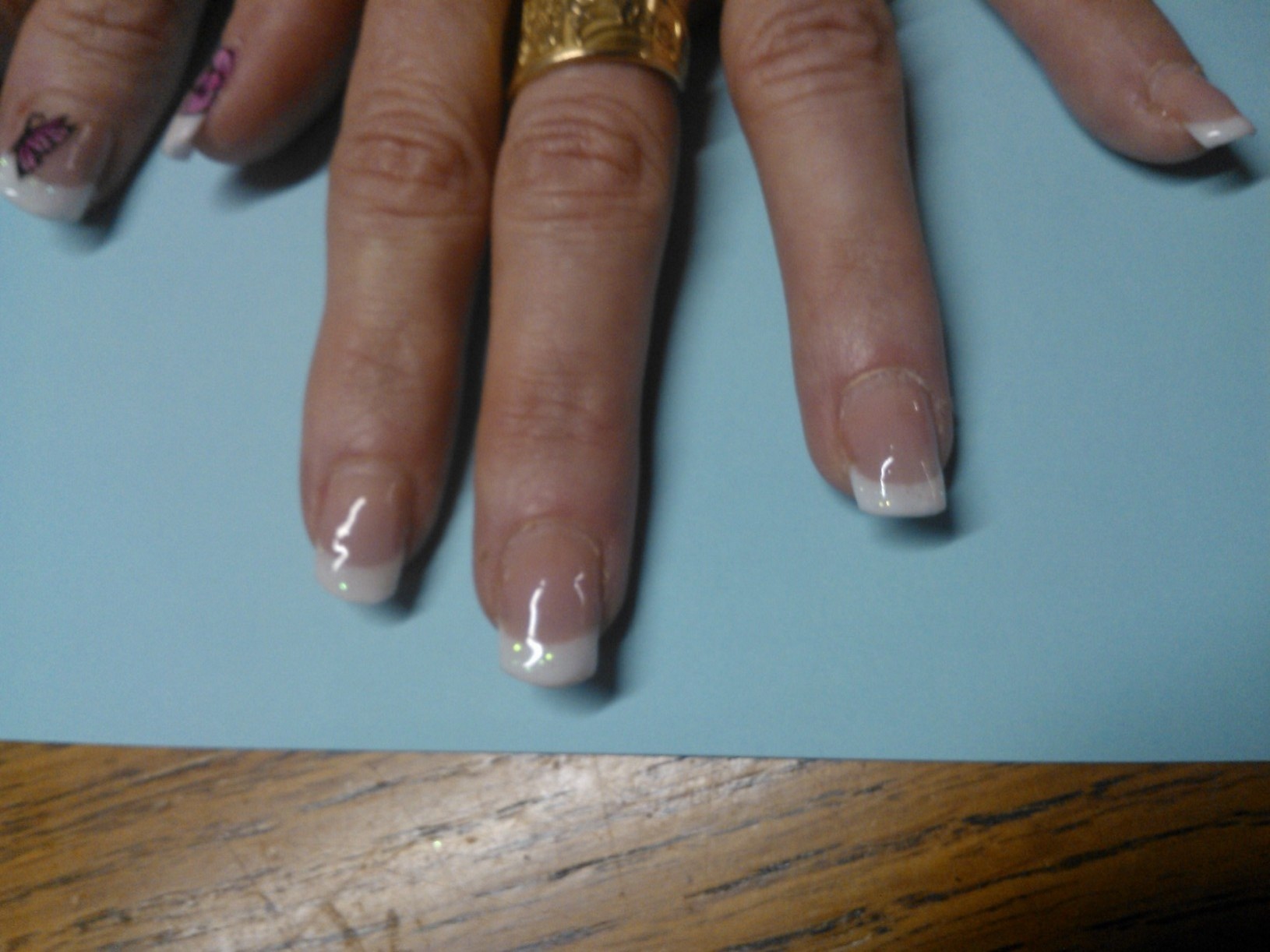 Il y a la pose de ma soeur, que je n'ai pas en photo, c'est une grosse brute avec ses ongles elle les maltraite et à des décollements sur 3 doigts (donc j'montre pas ça