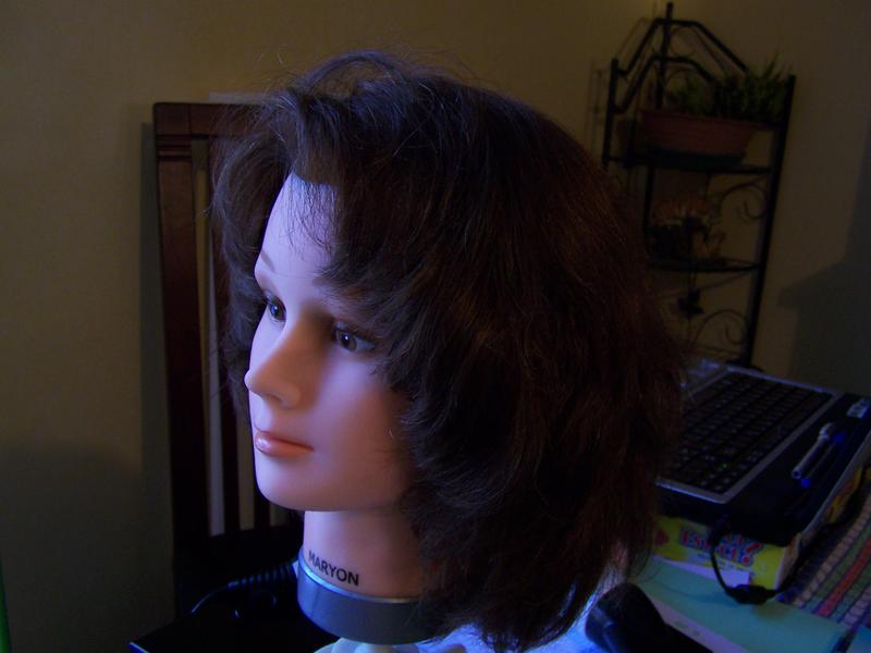 donc comme j'ai dis précédement jai fait une mise en plis au milieu du crâne ensuite j'ai coupé les côtés et derriere coupe courte.