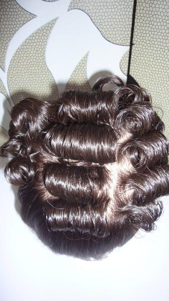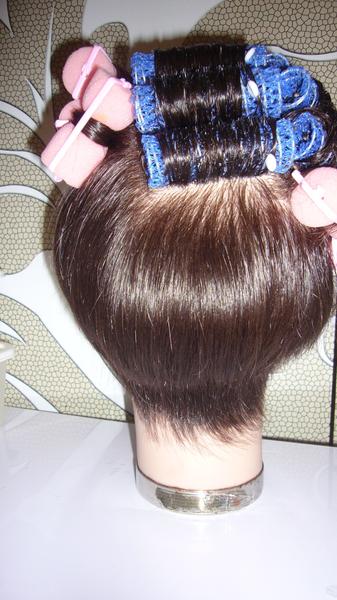 meme si tu as que ca la prochaine fois essaie de faire en directionnelle par rapport au sens de la coiffure que tu souhaite car sur la photo ou tu as enlever les photos on peut voir des 'trous' ca sera plus facile pour toi apres de coiffer ..