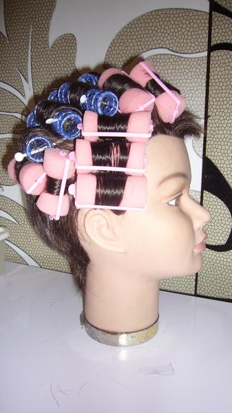 En fait j'ai pas encoe tous les rouleaux donc j'ai besoin pour l'instant je fais avec les moyen du bord s'est que ces vieux bigoudis que j'avais sur la main je n'ai pas encore acheter de bigoudis avec les taille qu'il faut ses bigoudis se sont les mienne que j'utilisais avant.