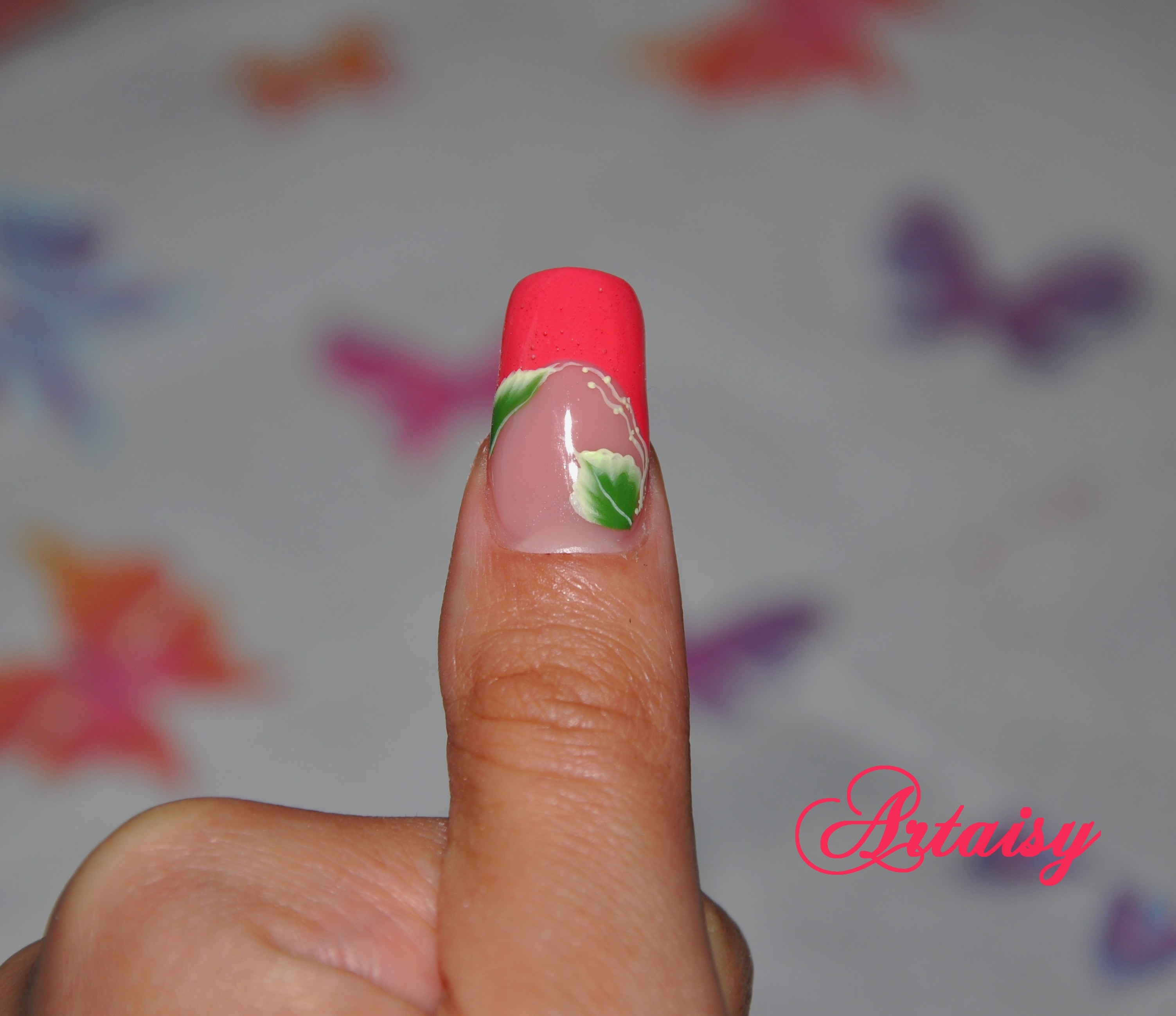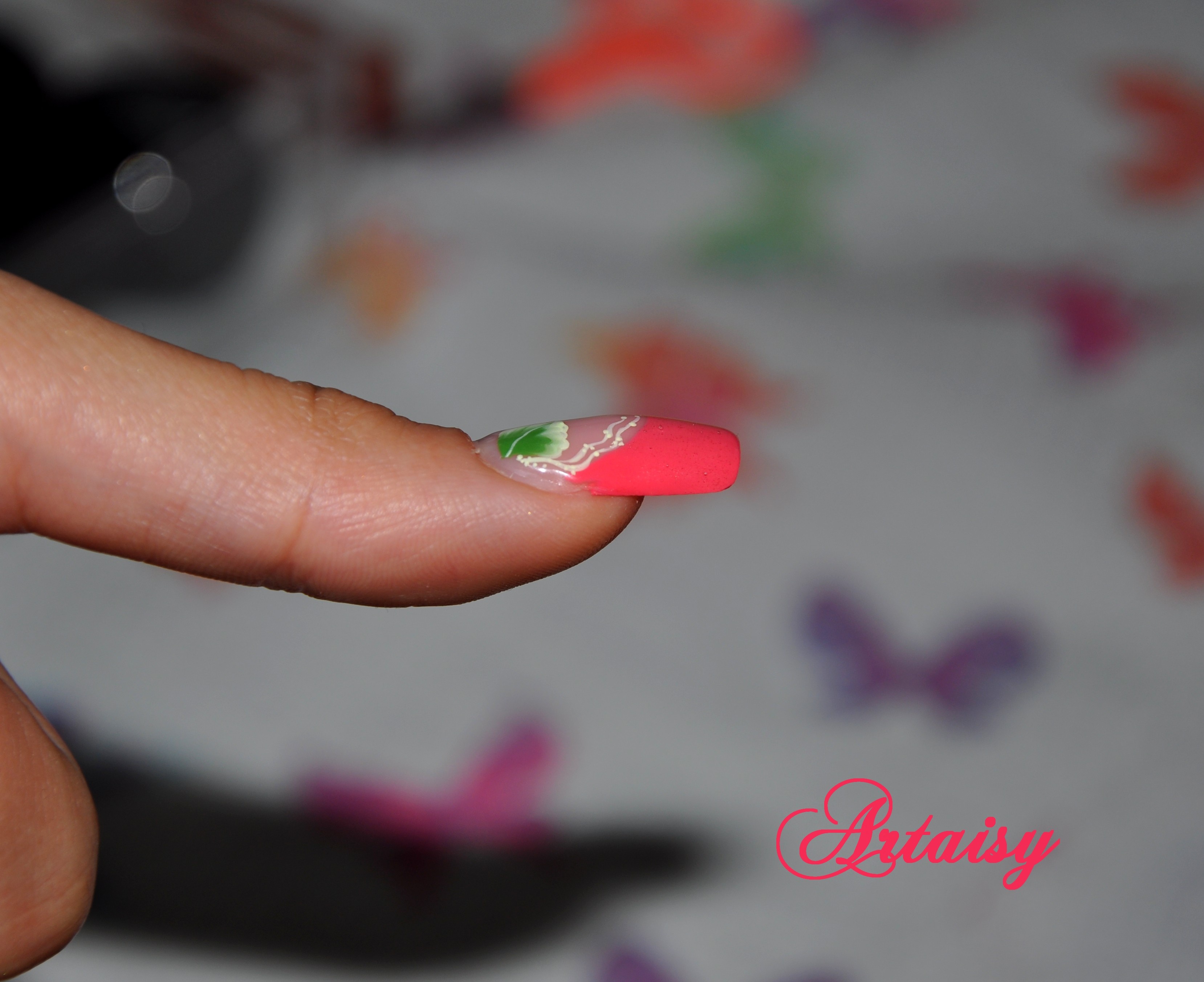 Merci, c'est au début: le positionnement du chablon, il doit être haut, j'y arrive pas encore vu que j'ai un espace énorme sur le côté entre mon ongle naturel et le chablon.