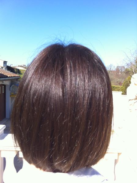 Voici mes cheveux ! au soleil , il il faut aussi savoir que ma couleur juste faite est un poil plus foncé !