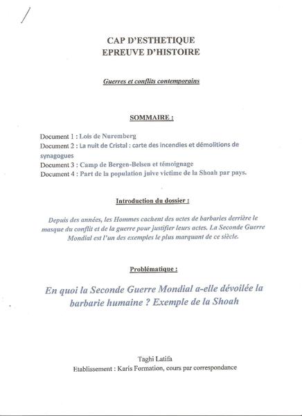 Re : Epreuve Geo et Histoire du CAP ESTHETIQUE
