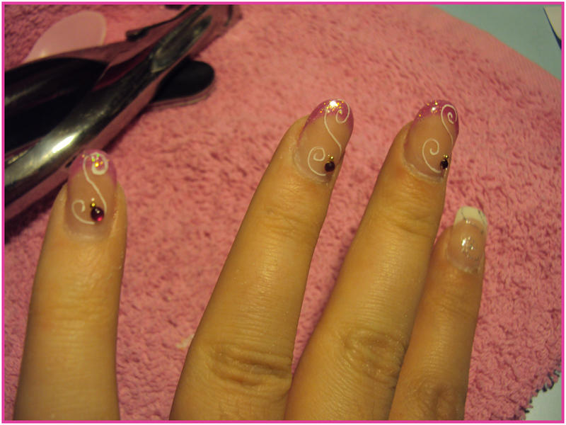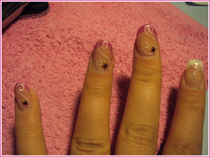 J'ai mis des paillettes(3sortes de tailles/couleur) avec du gel de base,j'ai fait un méli-mélo avec!