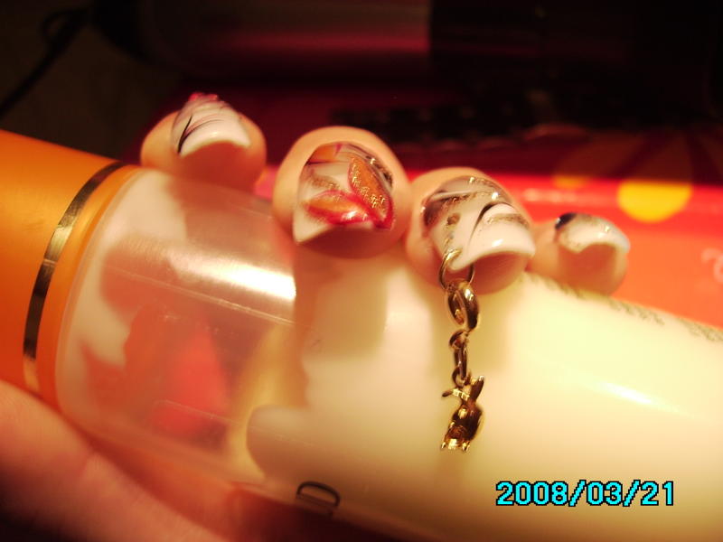 Alors voilà... mes essais de cet apres midi sur ma main gauche ( enfin les 3 derniers doigts ! )...va falloir s'entrainer un peu car le gel a tendance à ne pas rester tel qu'on l'applique, il s'etale un peu..:Dancing_O_o::table: