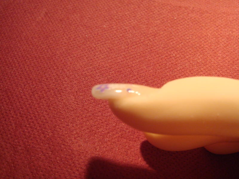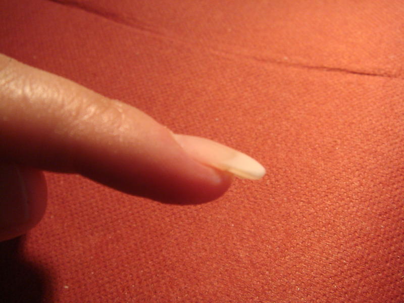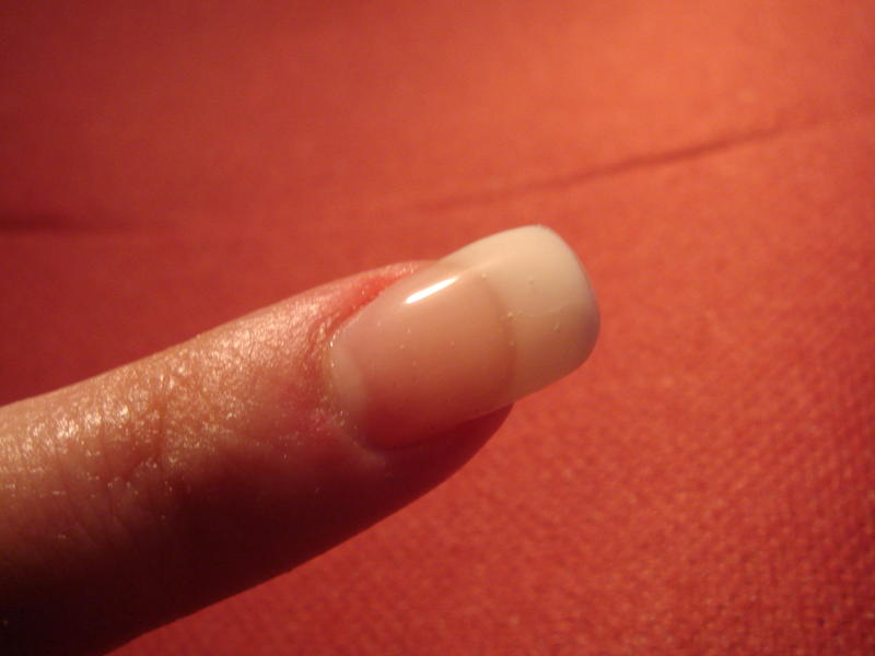 Alors voilà, sur la main, c'est une pose avec tips classique et sur mon doigt, c'est mon premier essai au chablon.