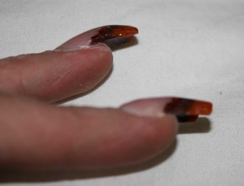 Alors je ne parle pas de la french pas nette et autres défauts...en plus en m'appliquant je me suis rendue compte après que mes ongles partaient de travers, donc j'ai modifié la forme du coup cela ne ressemble plus à rien, plus de curve agrrrrrrrrr
