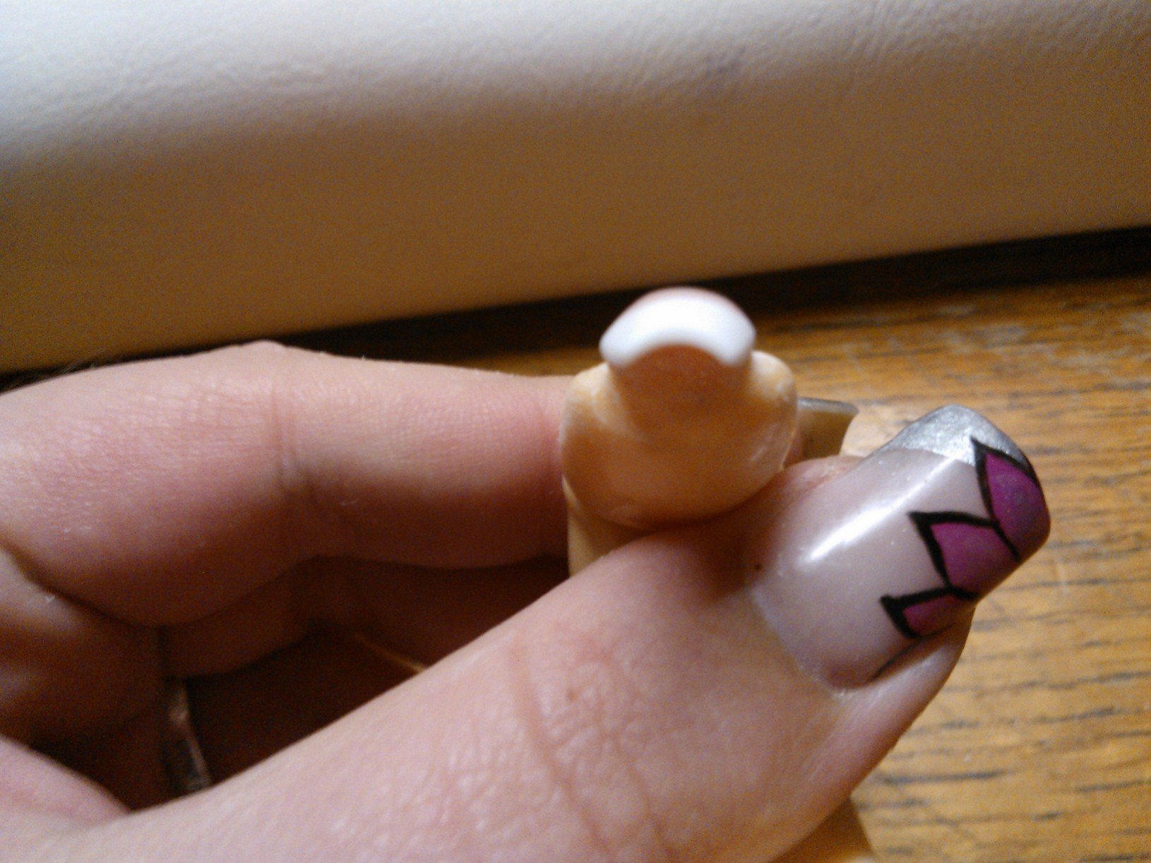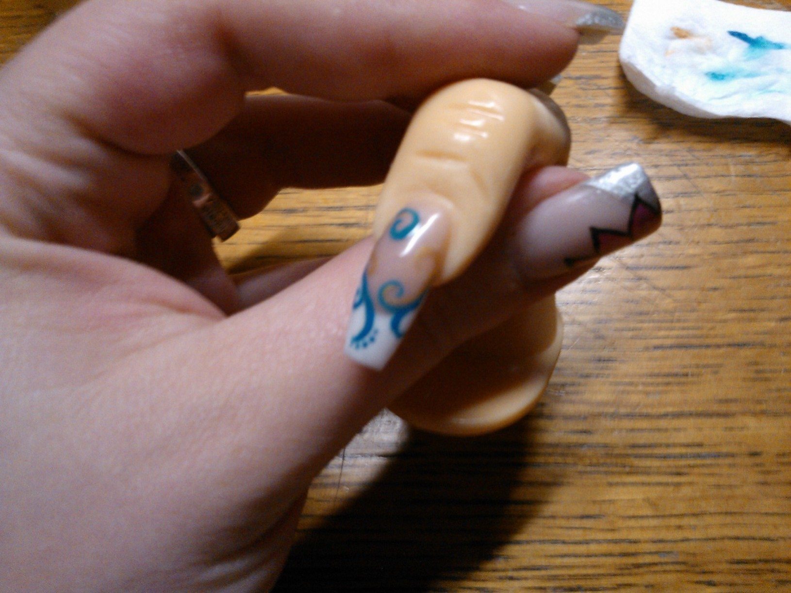 Eh ben voila ça y est je pense avoir enfin réussi quelque chose de portable en résine, sur doigt d'entrainement évidemment, j'ai pas encore osé poser sur moi avec la résine (oui je suis mon meilleur cobaye :p).