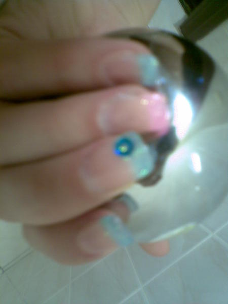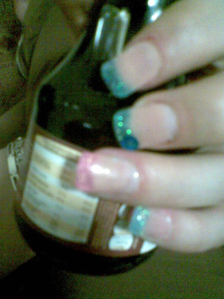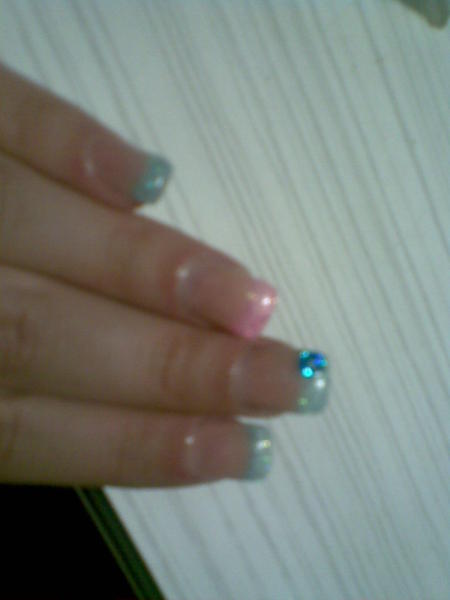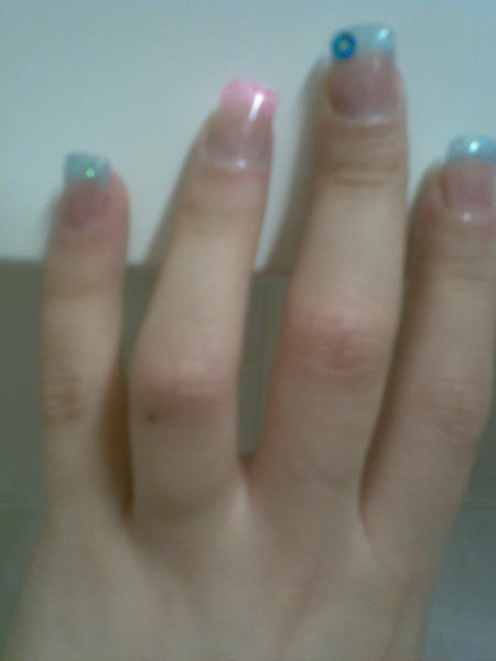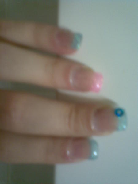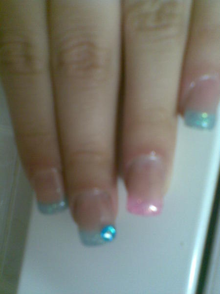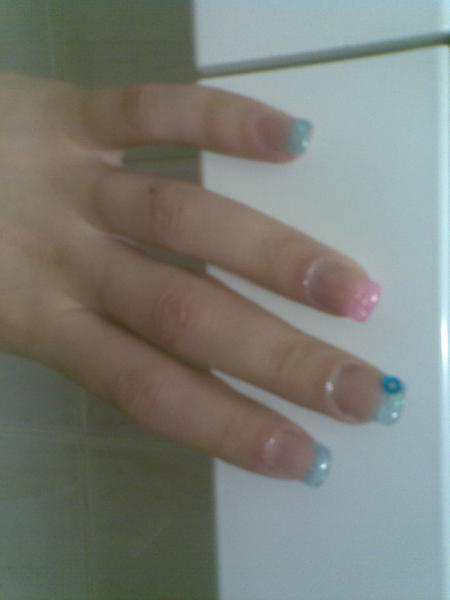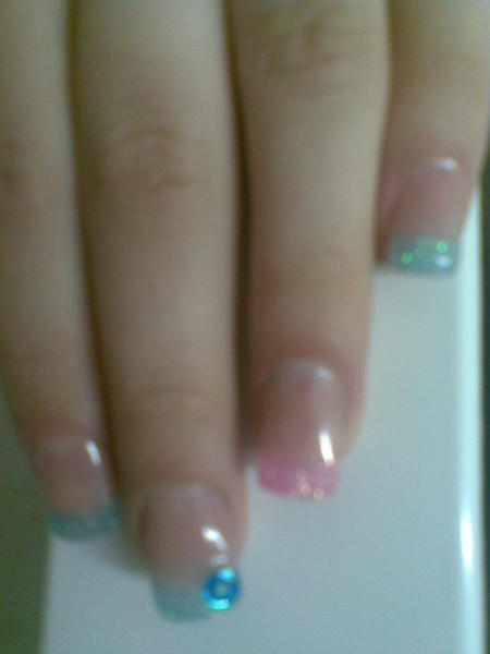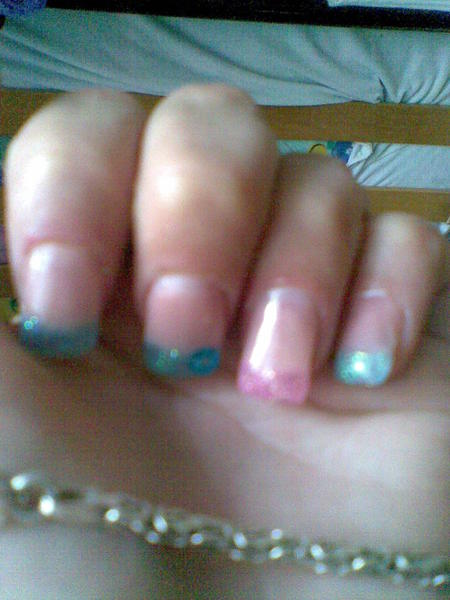 Gel paillette turquoise & rose - gel base & constru de rydnails - finition onglerie.
