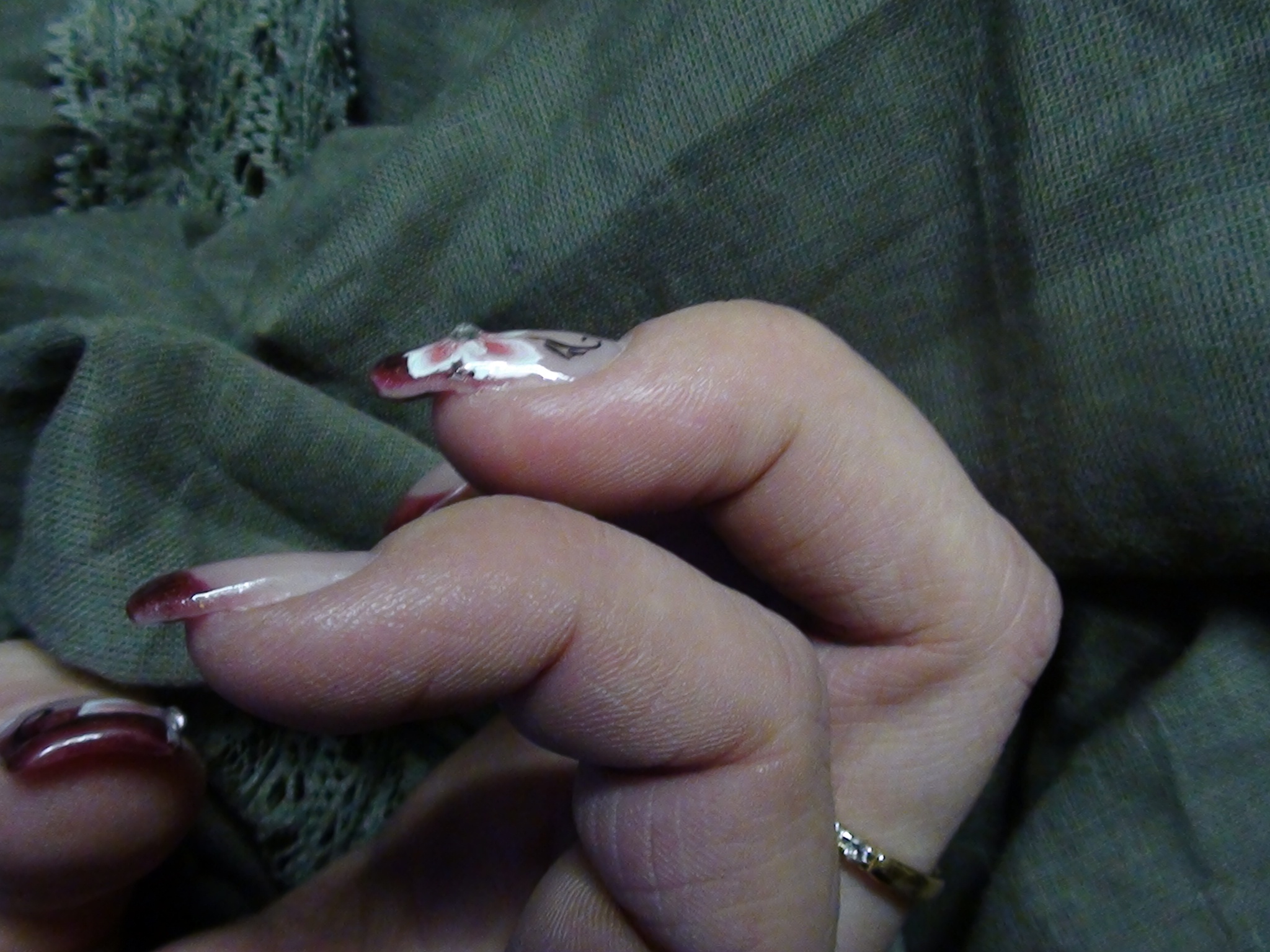 toutes en gel , la pose rouge c sur ma main pose pour la saint valentin , j'ai mis une photo de profil , le bombé est -il bien placé ????:(car c ma bête noir !