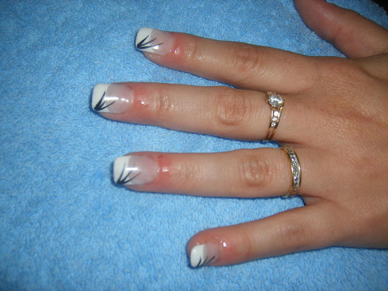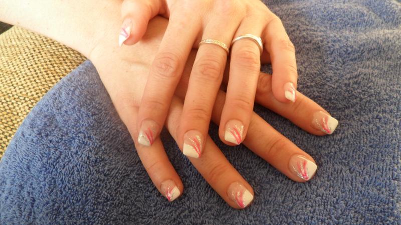 pour la deuxieme la demarcation que l'on voit c'est la french qui a bavé, mon amie l'a voulu en vernie et non au gel mais en utilisant le correcteur pour essayer de faire un plus joli sourire ya du blanc qui est resté en bavure (je sais pas si vous comprenez lol)