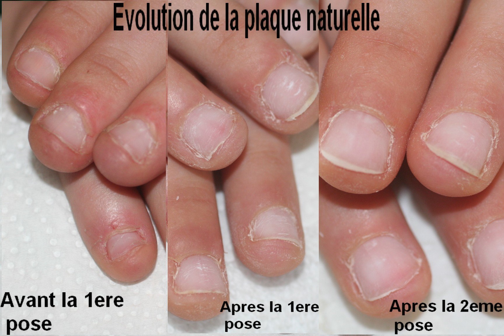 waw.... moi j ai arreter depuis 2 mois. les sien son surement tres fragile et cassant. conseille lui des gellules a la levure de biere. il si elle ne pose plus mettre du vernis herome bleu ou blanc pour que ses ongles soit plus solide.