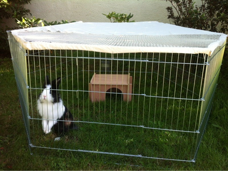 Coucou les filles ! En attendant de faire construire notre maison nous sommes retournés vivre chez ma maman, elle a une très grande maison avec peu de porte et un grand jardin,donc si j imaginais laisser mon bébé courir partout impossible de la rattrapper!deja que dans notre petite maison la seule solution pour la faire rentrer dans sa cage c était de remuer le paquet de granulé et en verser dans la gamèle pour Qu elle accourt!!! Lol alors à part dans sa véranda quand il y fait pas trop chaud et avec nous dans la chambre le soir,elle pouvait pas trop sortir et encore moins profiter de l extérieur. Je voulais lui fabriquer un enclos dans le jardin et finalement regardez ce que les beaux parents ont trouvé!!!trop génial! On vient de l installer :-)