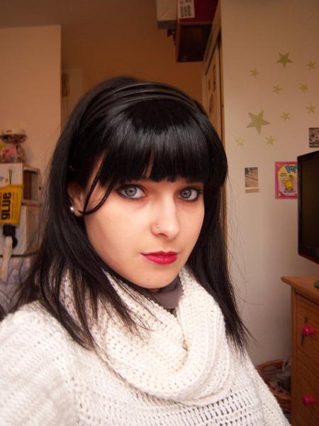 voila une photo avec ma frange thermofibre j'ai poster un sondage sur FB car c'etait en vue d'avoir une vrai en cheveux mais a clip c'est mort je coupe pas!! lol