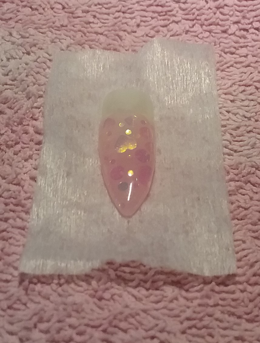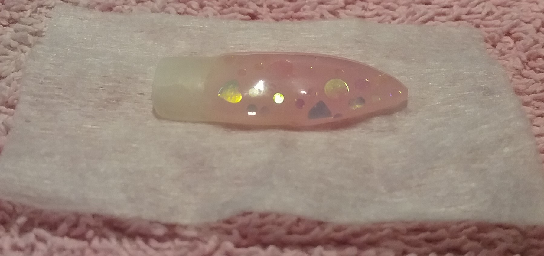 j'ai coupé un tips que j ai ensuite colle avec une patte sur le support. J ai ensuite pu y ajouter un chablon pour m’entraîner à faire les extensions.