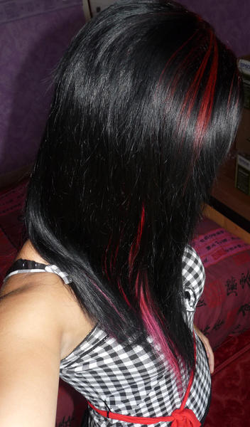 Du coup bah j'ai déco et colo des mèches de mon kit noir + mes vrai cheveux.