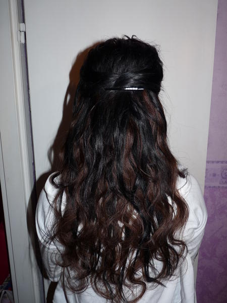 Coucou !!!! alors voila ma belle soeur que je considère comme ma soeur dors chez moi et mon homme jusqu'à dimanche,et elle n'a pas pu s'empêcher en voyant mes extensions à clips ondulé; de vouloir les mettre et faire des photos mdrr! sacré Lorraine tu changeras plus !!:teehee: du coup on s'est fait une tite soirée cheveux lol coiffage et extensions !!! donc voici ce que cela donne sur elle et sur moi