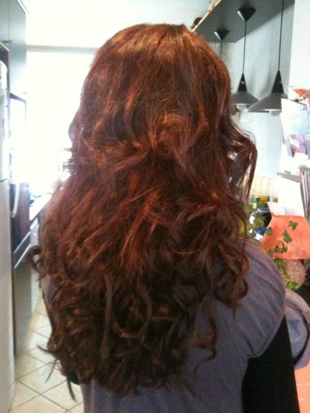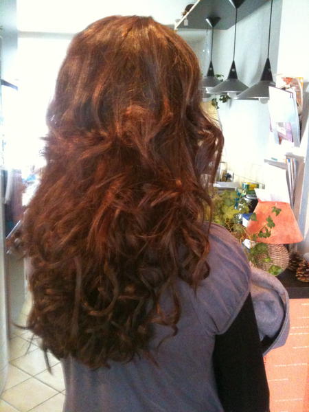 - Photo avant / après pose d'extensions + coiffage bouclé