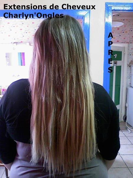 Voila une pose de 100 mèches (de chez kimm94 du fofo) j'ai pris deux teintes j'ai fait 50/50 qualité top j'adore !