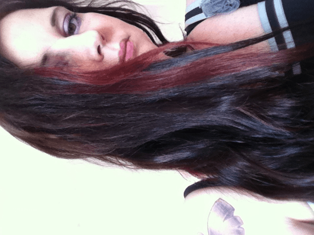 Désole des photos mais j'avais que ça sous la main... C'est la semaine dernière apres ma coloration avec des mèches rouges et l'autre une petite coiffure avec les nouveaux bibis a cheveux samiflo