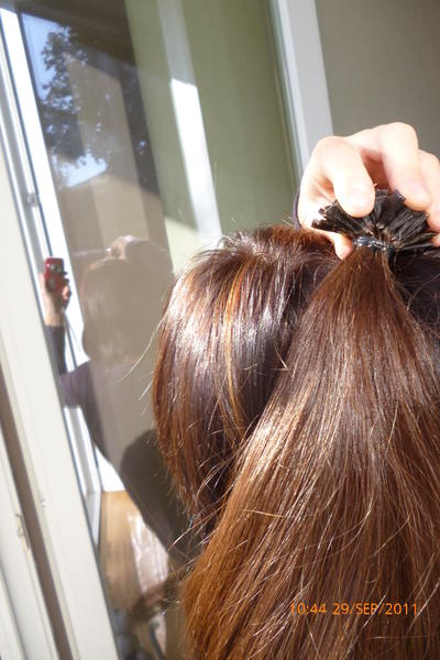 J'ajoute des photos pour que vous voyiez la différence de couleur, sachant que j'avais commandé 125 mèches en chatain et 25 en chocolat