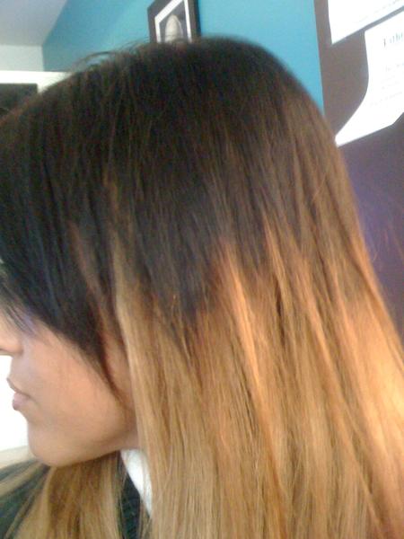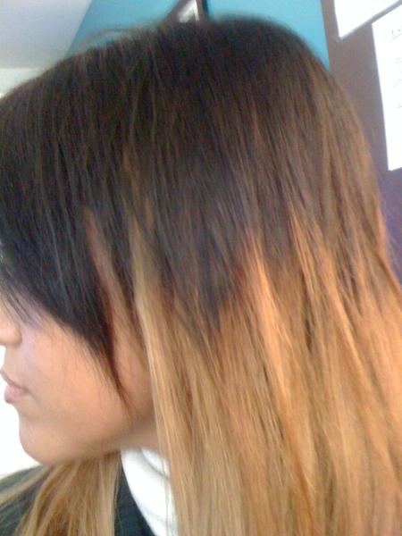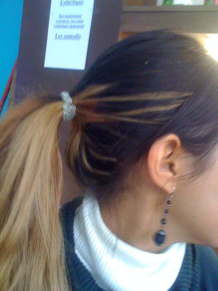 Ici, ça change, tout le monde me dit que 'cest joli et que ça me va bien.. Juste que je suis perfectionniste et là, c'est aps comme je veux donc ça m'angoisse je suis à deux doigts de tout remettre à zéro..c'est à dire ma couleur de base !! lol