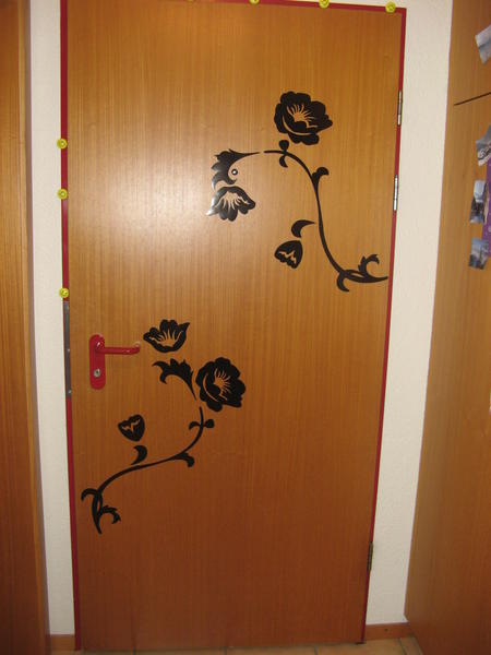 alors en premier, ma porte d'entrée, stickers IKEA (y a 4 branche/fleur) alors j'en ai mis aussi la meme chose sur la porte de la chambre..