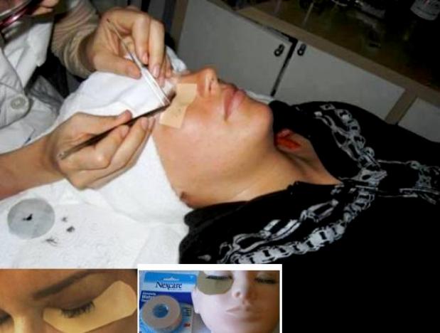 Il est conseille de mettre un peu de creme contour des yeux avant l'application du sparadrap.
