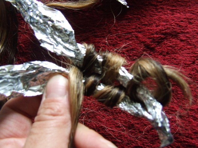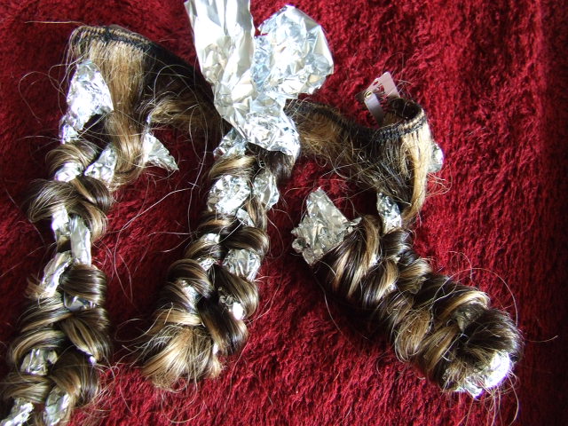 Au choix ou vous enroulez comme sur des bigoudis ou alors vous prenez une bandelette d'aluminium que vous enroulez et que vous pliez pour faire un V ,enroulez vos extensions en 8 dessus ,laissez poser toute la nuit et le lendemain matin voici de bien belle ondulations et ceci sans fatigue,passez les mains dedans et voilà le tour est joué ,selon la taille des mèches vous vous retrouverez avec une ondulation + ou - prononcée ,et pour celle qui le souhaites il est possible de faire des papillotes en tissus ,ideal pour celle qui portent des ext a chauds ou froids ou on la chance d'avoir dejà de long cheveux naturellement