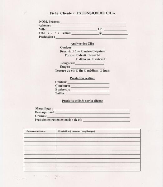 Moi aussi j'ai créé en mars pour mes formations et clientes une fiche où je note toutes les infos sur la cliente et sur les poses...je me permets de l'ajouter à ton post ma Katya:love1: