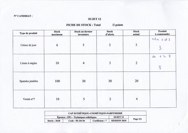 je voulais savoir ce que c'était cette fameuse fiche de stock à remplir? j'ai reçu avec ma liste de matériel une indication qui disait qu'on devrait remplir une fiche de stock pdt l'épreuve de pratique....a-t-on aussi une fiche diagnostique à remplir du coup? de même il faut montrer notre touche d'essai de coloration (de cil ou sourcils???) 48h avant et c'est bien dans le creux du bras du modèle??merci d'avance