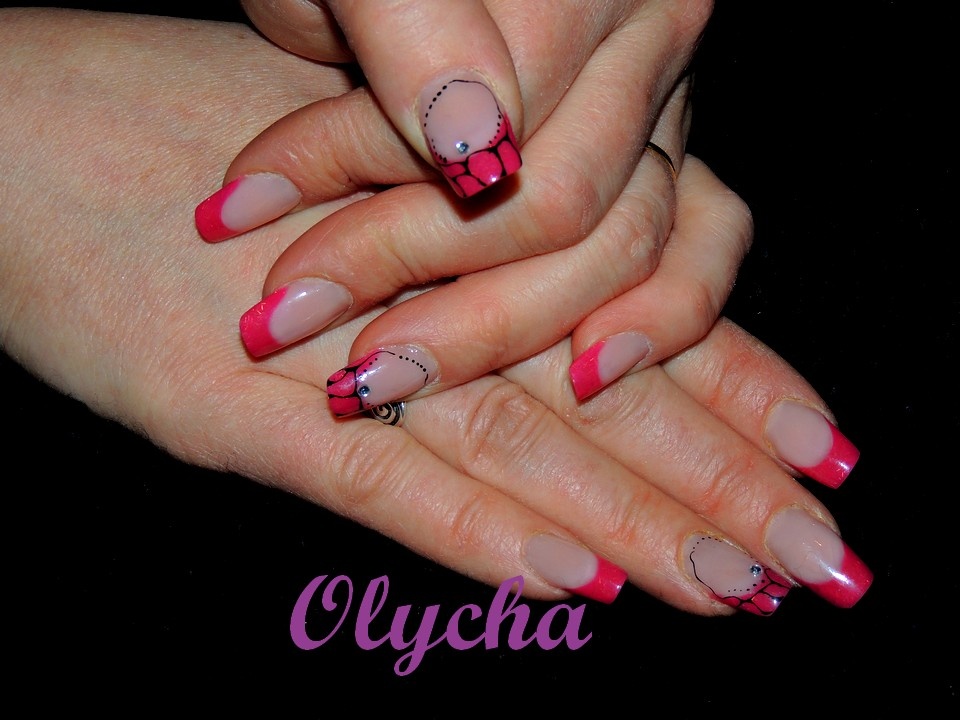 et 1 pose résine rose fluo déco peinture noire et l' autre en vernis permanent
