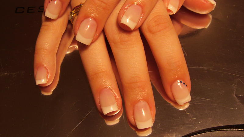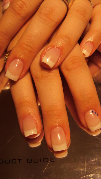 Et voilà mon travail de fin de semaine, remplissage (carré) et gainage (en amande) pour ce qui est des produits césars secret: antiseptique en vernis, nail prép one, primer (pour le gainage) et lift ex (pour le remplissage), aufbau gel de construction, make up (uniquement pour le remplissage), french ultra white et white builder, et gel uv super lack gloss pour la finition
