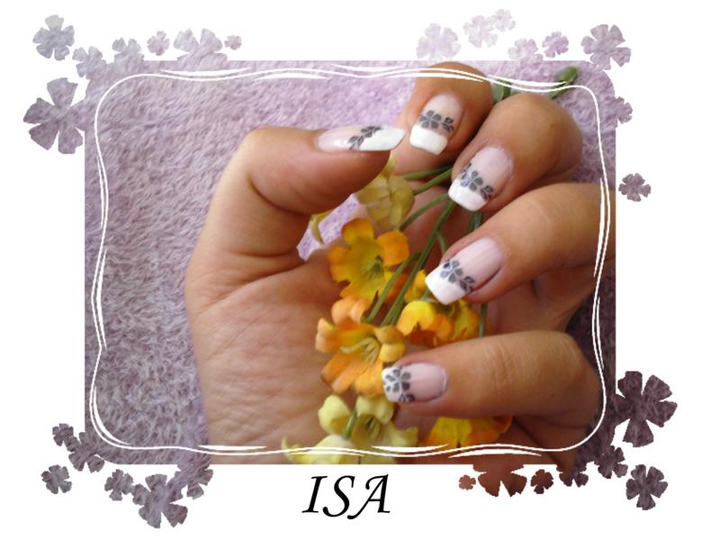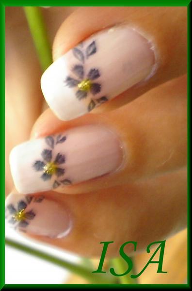 Petites fleurs noires , tampon Konad sur french vernis sur ongles naturels pour ma galerie