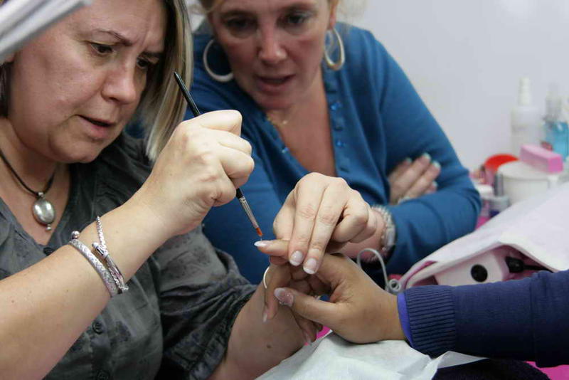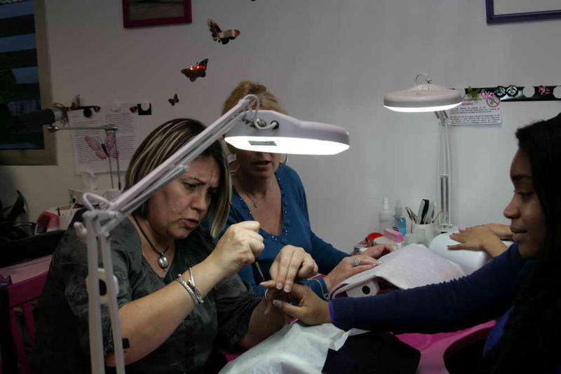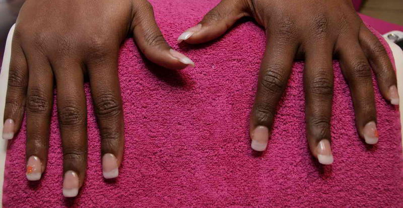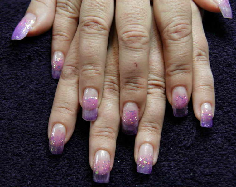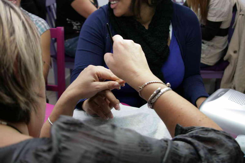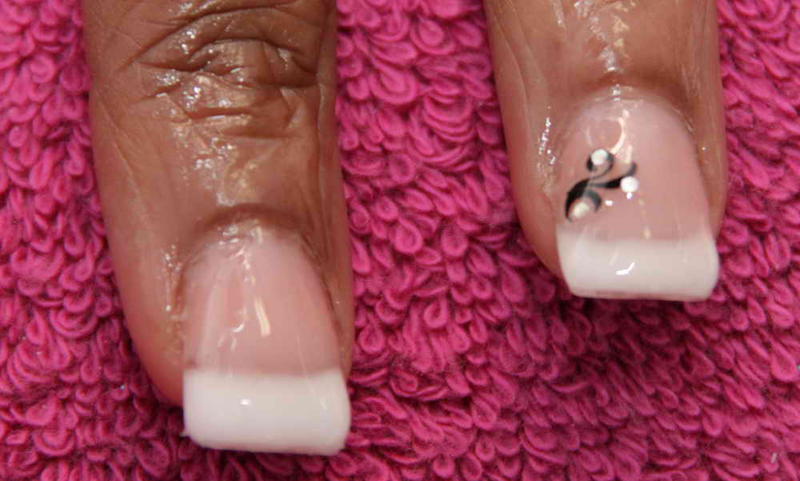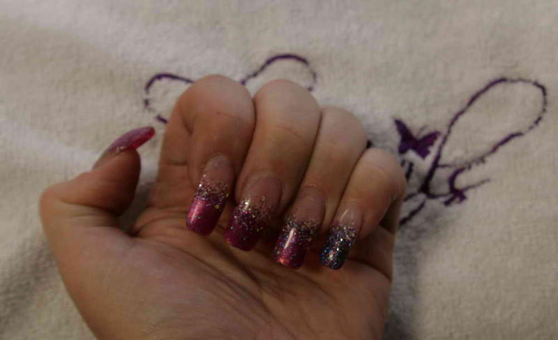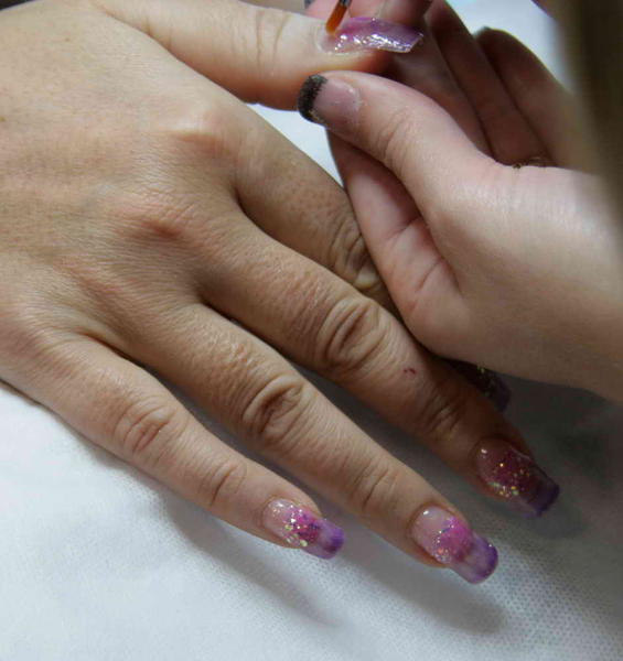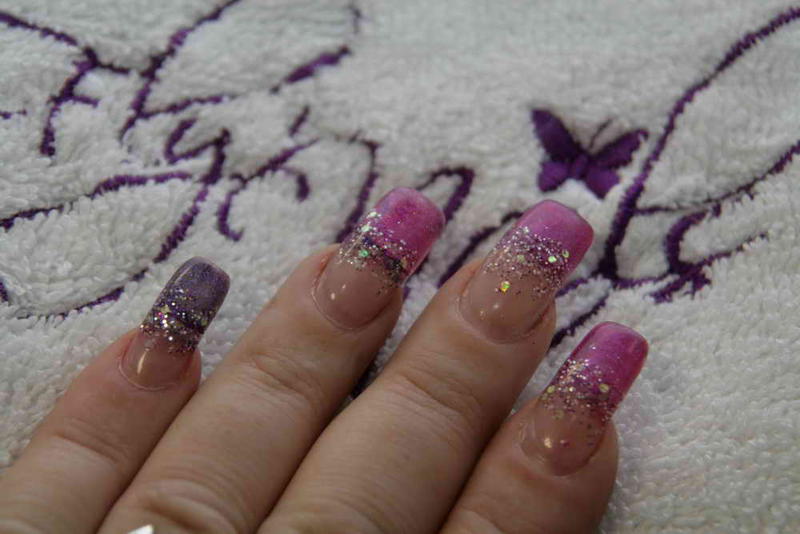 Il y a également mon remplissage de Chine fait par une élève aussi avec un exemple de modification que l'on peut réaliser sur une même pose rien qu'en mettant un vernis de couleur différente à l'envers de la pose (facilement interchangeable selon ses humeurs et sa tenue puisque retirable au dissolvant)