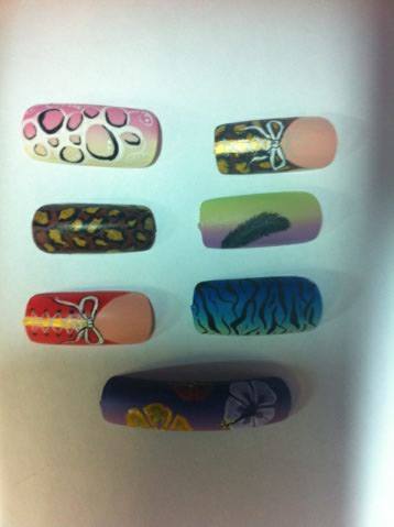 voila une nouvelle semaine ca passe vite!! alors ce matin rencontre avec bibi (formatrice resine gel et nail art one strocke ...)je crois que j'ai rien oublier! et les eleves de paris pour le nail art . j'avoue que j'etais pressé mais ca me fesait un peu peur le nail art parce que je suis vraiment pas douée en dessin et enfaite pas du tout!! tout c'est bien passé j'ai reussi a faire de beau dessin loin d'etre pro mais bien pr debuter, c 'est cool ca ma rassuré. aujourdh'ui on a fait degradé, fleur hiscibus, plume, bulles, leopard, corset et zebre ....voila la suite demain ....