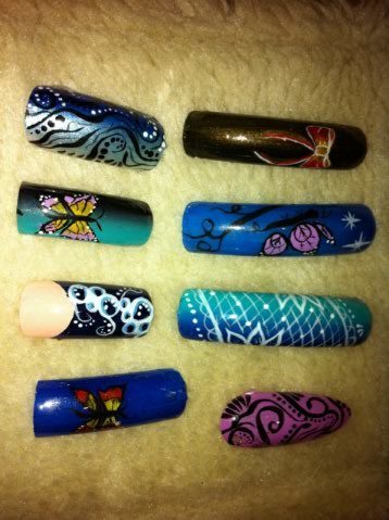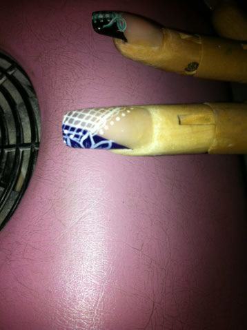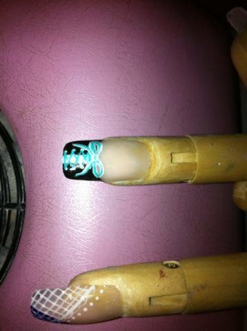 18eme jour ma 1er en resine qui a dit que c'etait plus facile que le gel?? parce que je trouve pas que se soit plus facile du tout!!!alors pour commencer entrainement sur capsule et 500 capsules apres, lol c'est pas super!! et ce matin resine sur modele bibi ma fait faire une pose pas simple elle a trop d'imagination ! mais oh final ca a donner une belle pose .cet apres midi pose sur 2 eme modele mais bon j'ai triché j'avoue ,comme j'etait a la bourre sur le 1er modele le 2 eme est arrivé dc pour pas quel attende c'est bibi qui a faire la prepa la resine bref tout !!!mdr puisque j'ai fait que le poncage et la deco! bon aller je vs met les photos de tt ca.