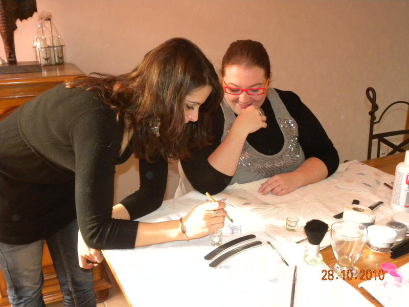 Le matin nous avons parlé hygiène, théorie, architecture, matériel... Elles ont pu découvrir les produits Kodi et s'entrainer aux ratios et au façonnage. Leur "bonne" main a été leur cobaye ! Félicitons Sue et Coraline qui touchaient la résine pour la 1ere fois