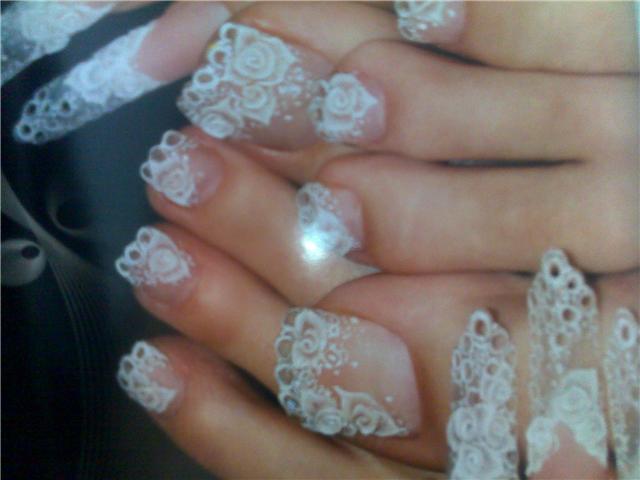 "Voilà là c pour la formation dentelle et là c réalisé sur les pieds, il faut absolument faire un allongement de la plaque avat de travailler car on ne peu pas percer l'ongle naturel! est ce que tu as déjà réalisé des ongles edge? "