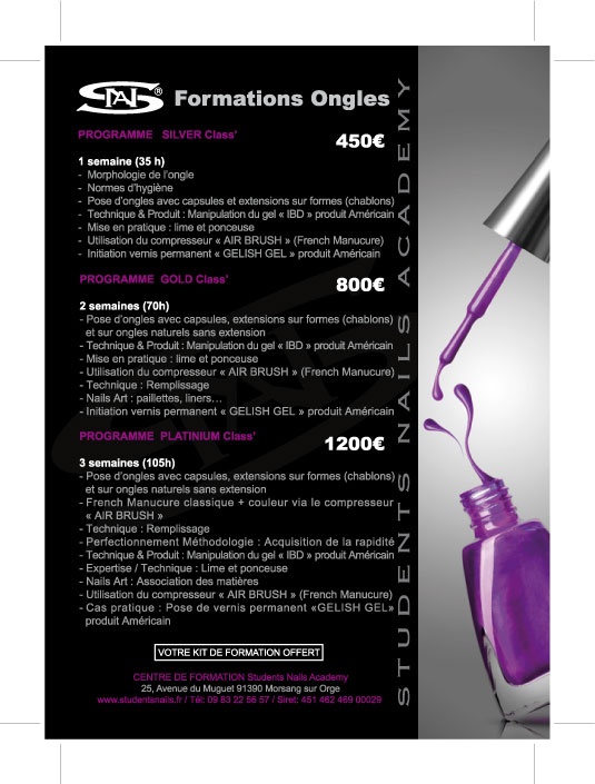 L’expérience et le savoir faire acquis depuis toutes ces années seront mis à votre disposition le temps de votre formation ongle.