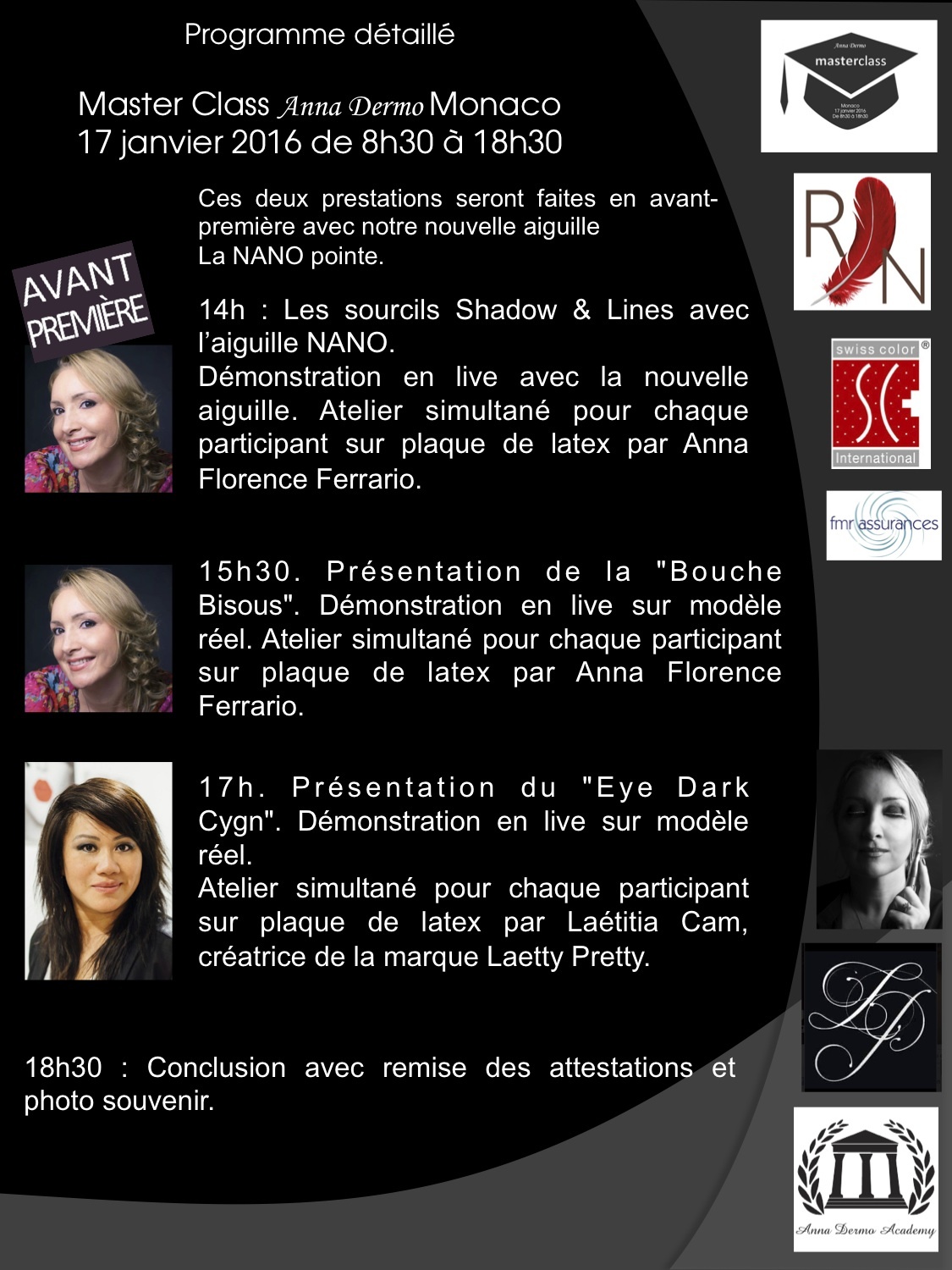 17h. Présentation du "Eye Dark Cygn". Démonstration en live sur modèle réel. Atelier simultané pour chaque participant sur plaque de latex.