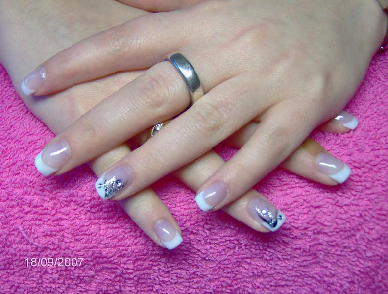 french Blanche avec déco stripping Noir et Argenté et 2 Strass Diamant