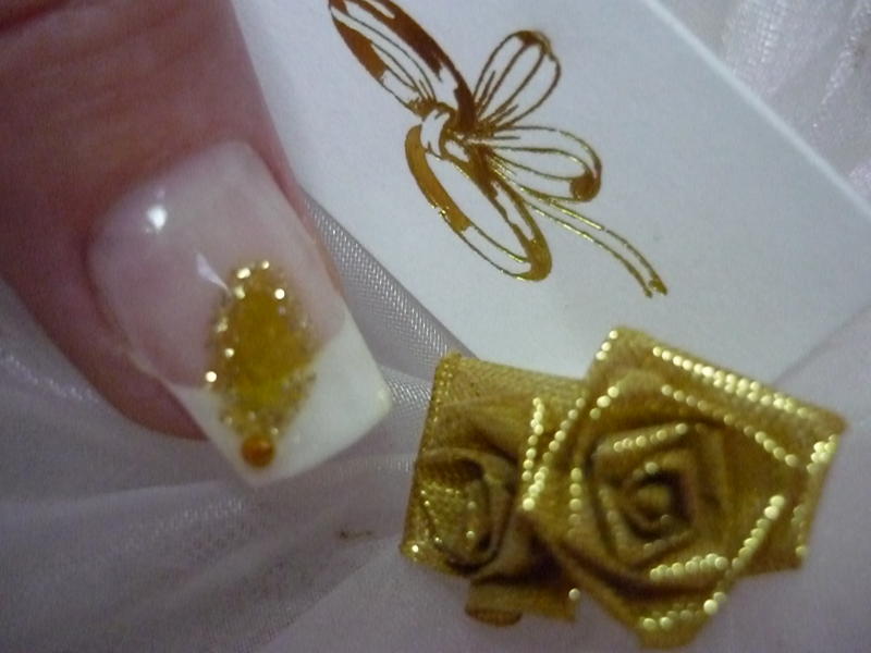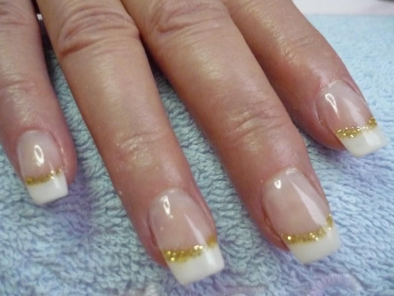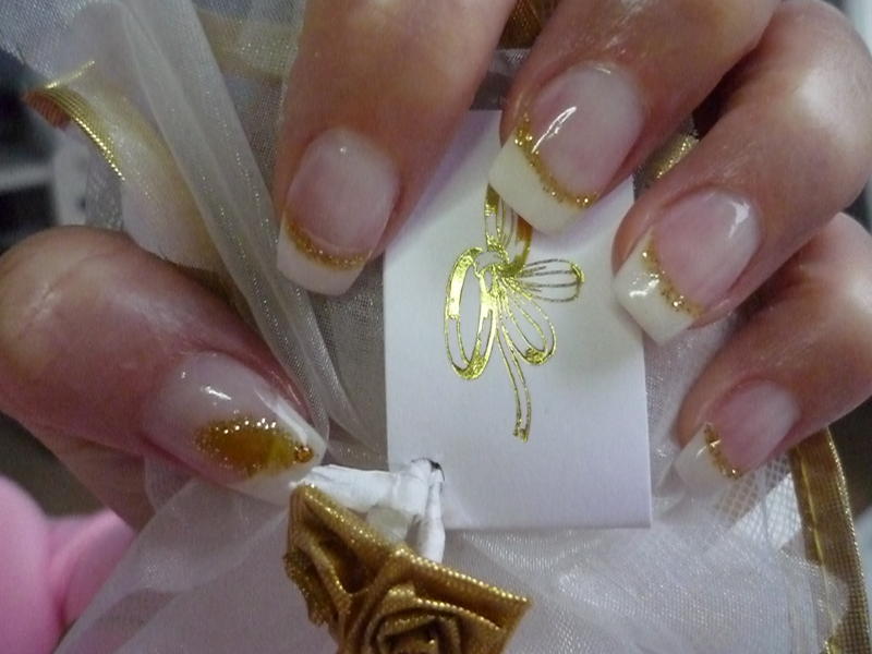 Re : French blanche et or pailletée oui tres fete!!! j'aime moin le pouce mais question de gout sinon ta pose est tres belle