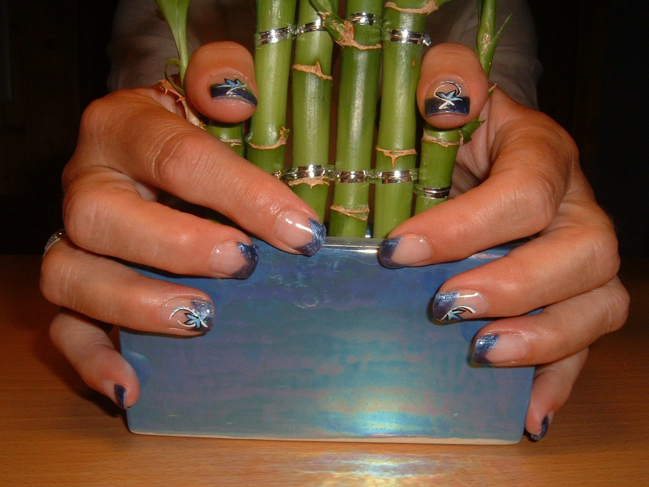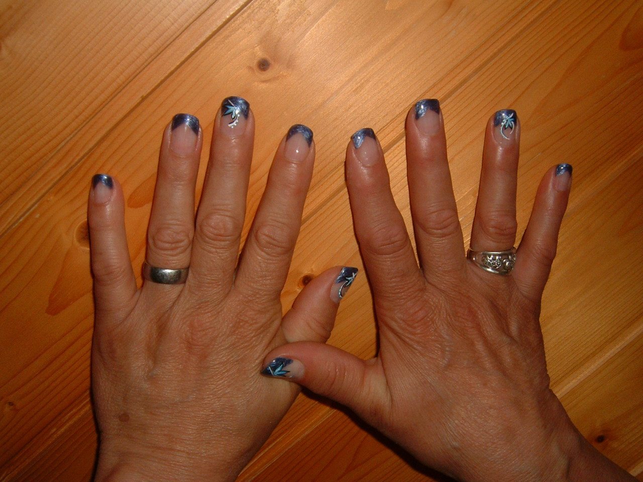 Le majeur droit a été cassé (salement cassé même ouille ouille!!), réparé avec chablon mais pas super :0( la prochaine fois j'essaierai un tips j'arrive pas à donner une jolie forme