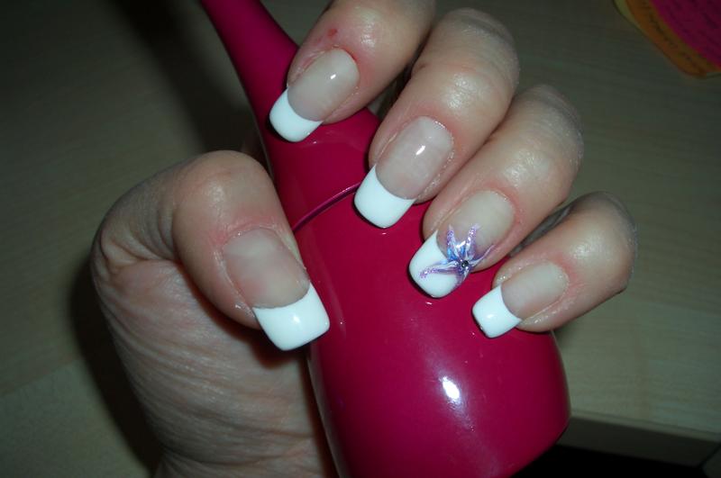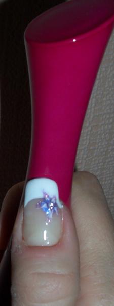 Alors j'ai fait la french, je l'ai catalyser et seulement après j'ai fait mes points de couleurs différentes au spot, puis j'ai tiré le tout avec un pinceau fin comme l'explique Mimissa. Voili voilà ! :32-ironic: