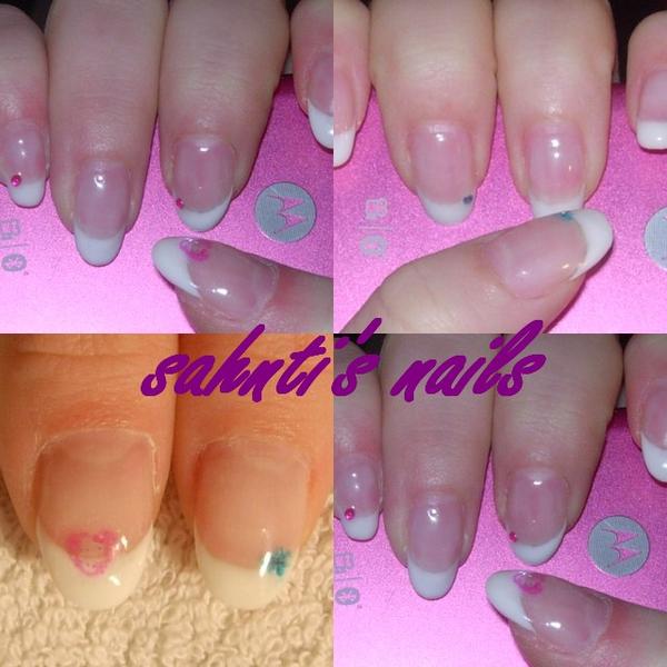 les doigt ne sont pas tous aligné donc des fois on crois qu'ils n'ont pas tous la même longeur de french et de dimension mais si on a fait le colle des ongles face à face.un main hello kitty et strass rose l'autre main fleur séché et strass turquoise