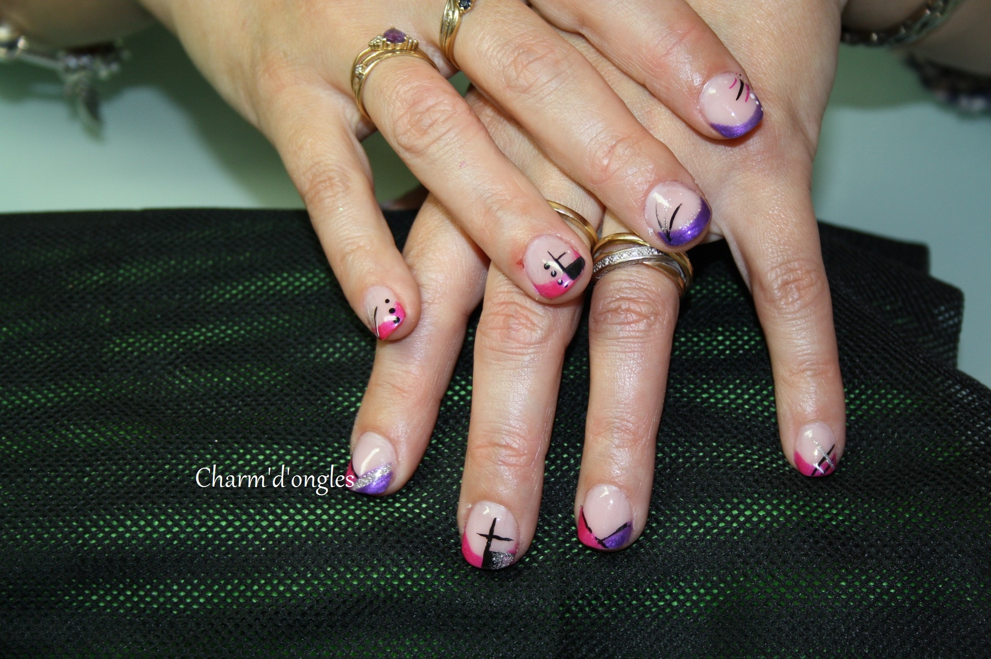 Une cliente qui essaie de faire pousser ses ongles qui cassent au fur et à mesure;j'ai fais un gainage mais du coup elle ne voulais pas que je lime la longueur à l'ongle le plus court ,donc c'est pas trop égale j'ai dut tricher